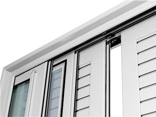 Συρόμενο δίφυλλο χωνευτό τζάμι - σήτα - παντζούρι συμβατικού κρύου προφίλ