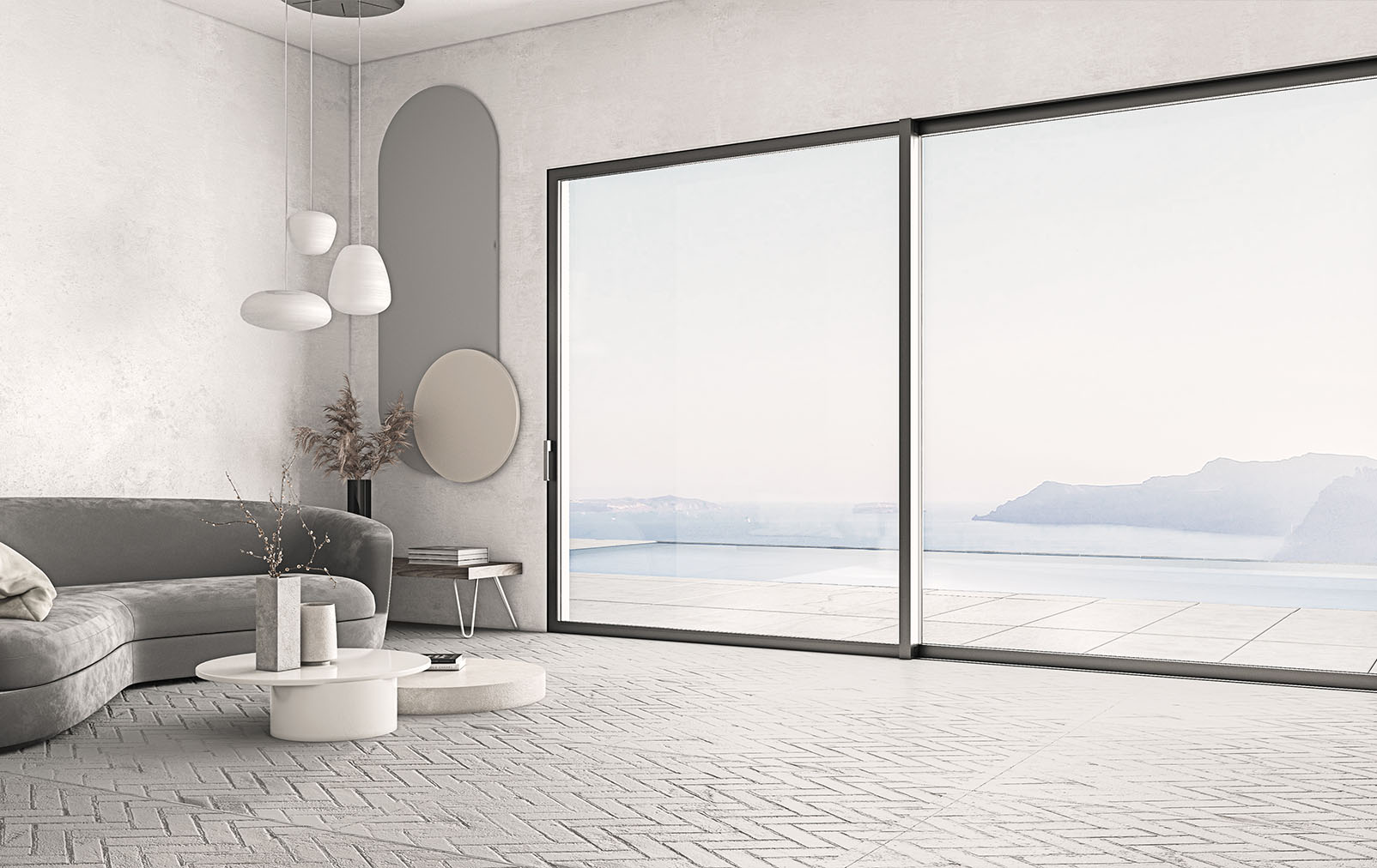 Συρόμενο ανασηκούμενο ενεργειακό επάλληλο τζάμι MD (minimal design), της σειράς Elvial S46 SI² MD