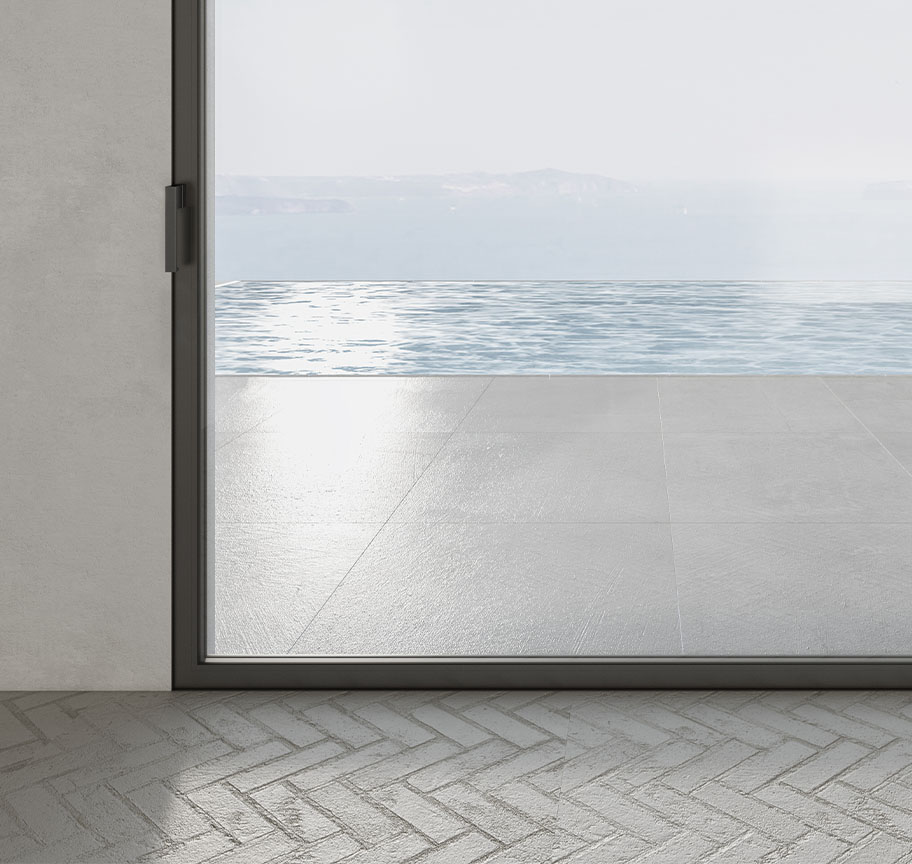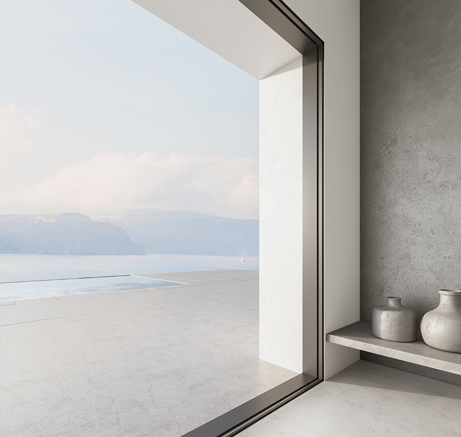 Το προφίλ του συστήματος ενισχύεται με ειδικά διακοσμητικά καπάκια που δημιουργούν ένα ενιαίο οπτικό σύνολο. Σχεδιασμένο κυριολεκτικά "επίπεδο"! Ελάχιστο περίγραμμα αφού η εσωτερική όψη του προφίλ μπορεί να καλυφθεί ώστε να μένουν ορατά μόλις 59 χιλιοστά του. Η δυνατότητα αυτή σας επιτρέπει να επιλέξετε είτε πιο αυστηρά είτε πιο τολμηρά στιλ εσωτερικής διακόσμησης.