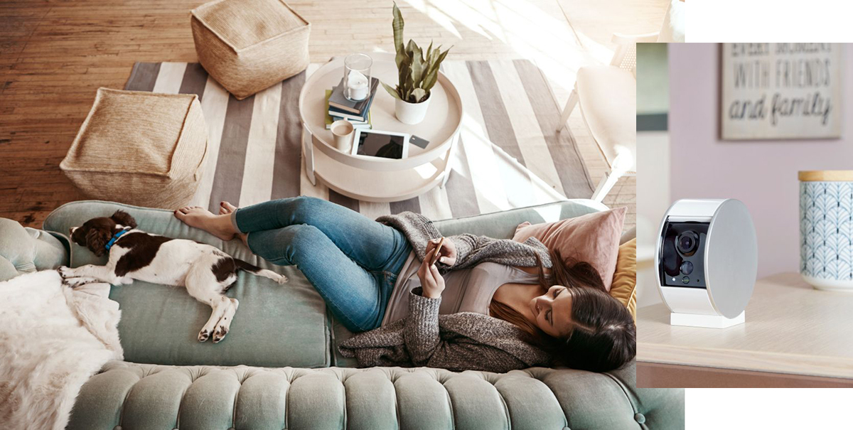 Εσωτερική κάμερα ασφαλείας Somfy εξοπλισμένη με αυτόματο κλείστρο παρέχοντας προστασία και σεβασμό στην ιδιωτικότητά σου